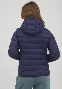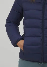 Abrigo corto tipo plumífero, ligero con bolsillos y capucha.