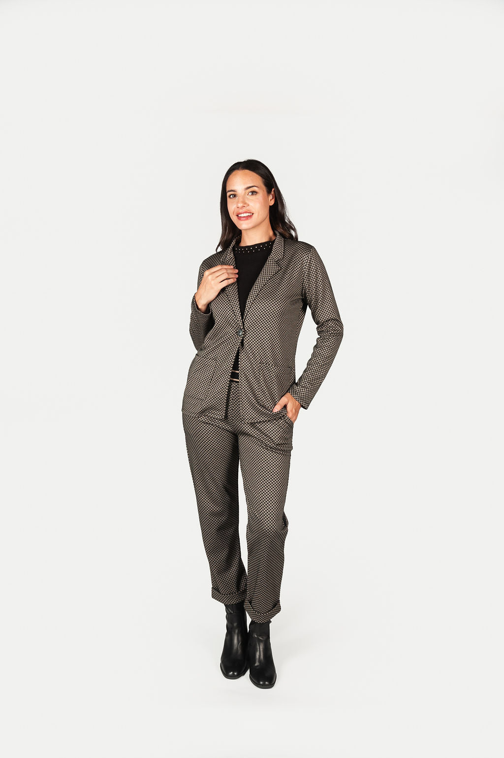 Americana estampada, con un botón de cierre y bolsillos de plastón.