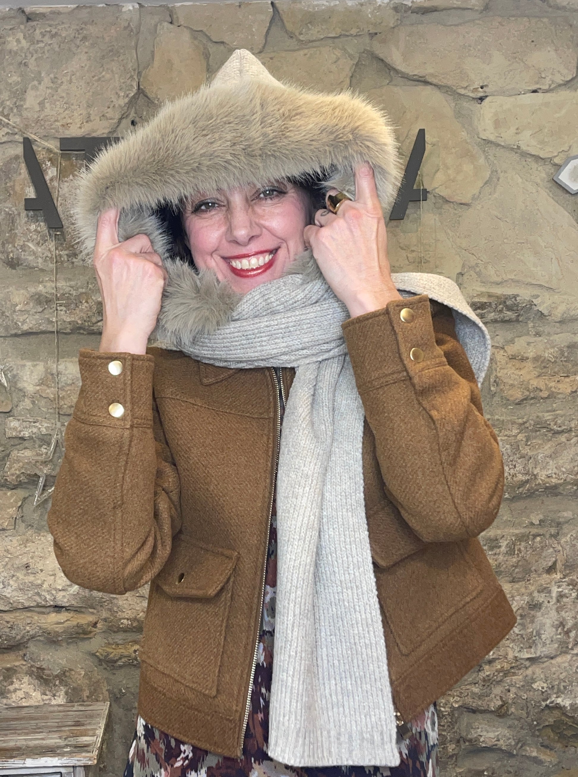 El balaclava con pelo alrededor de la capucha, y con una bufanda incorporada, para sentirte calentita y con muuuuuuucho estilo.