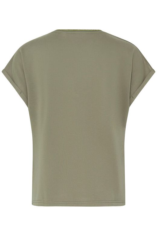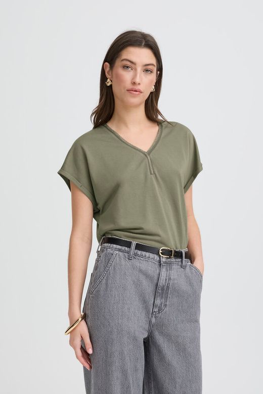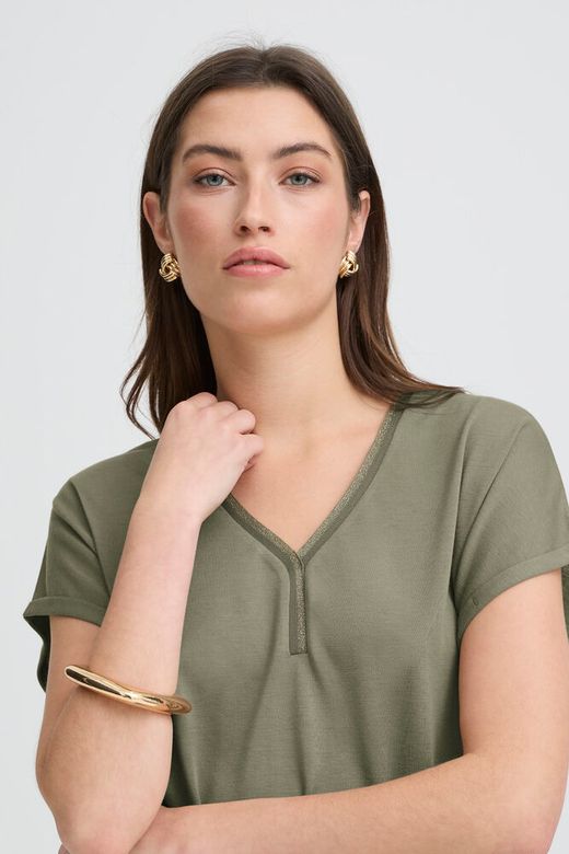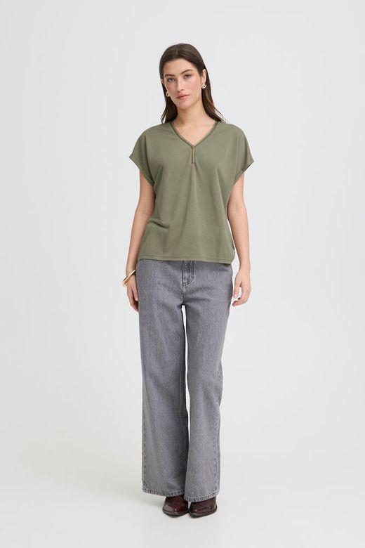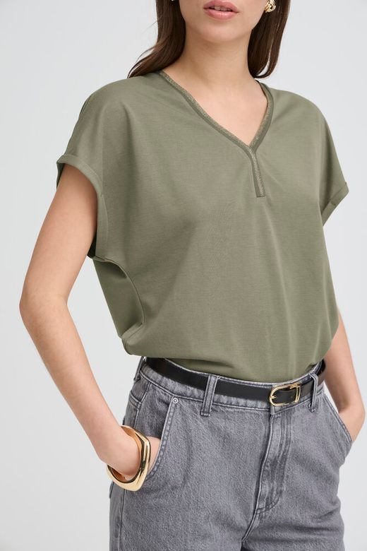 Camiseta de maga corta, escote en pico con detalle.