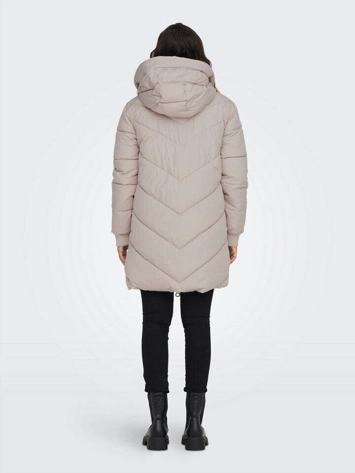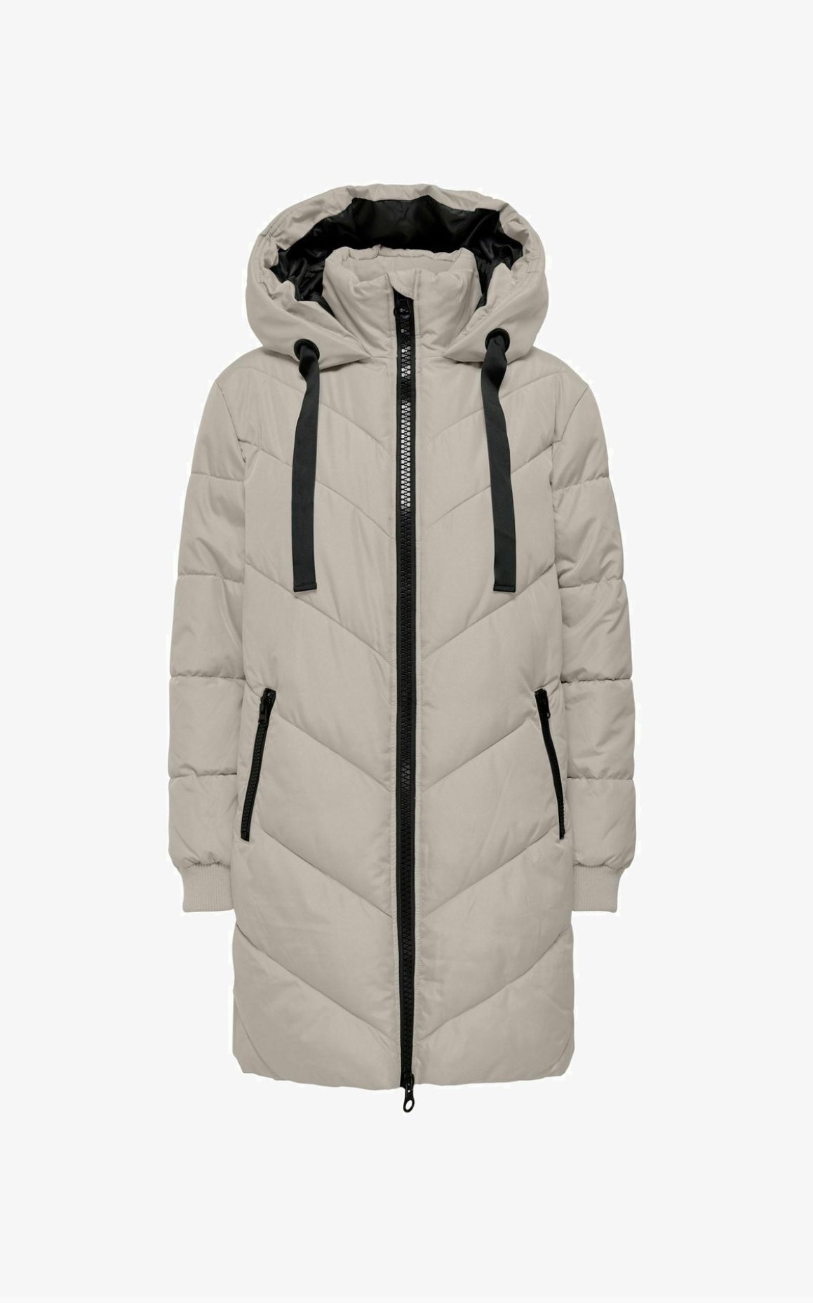 Abrigo largo con capucha, bolsillos con cremallera, mangas terminadas en puño de punto, cremallera doble,