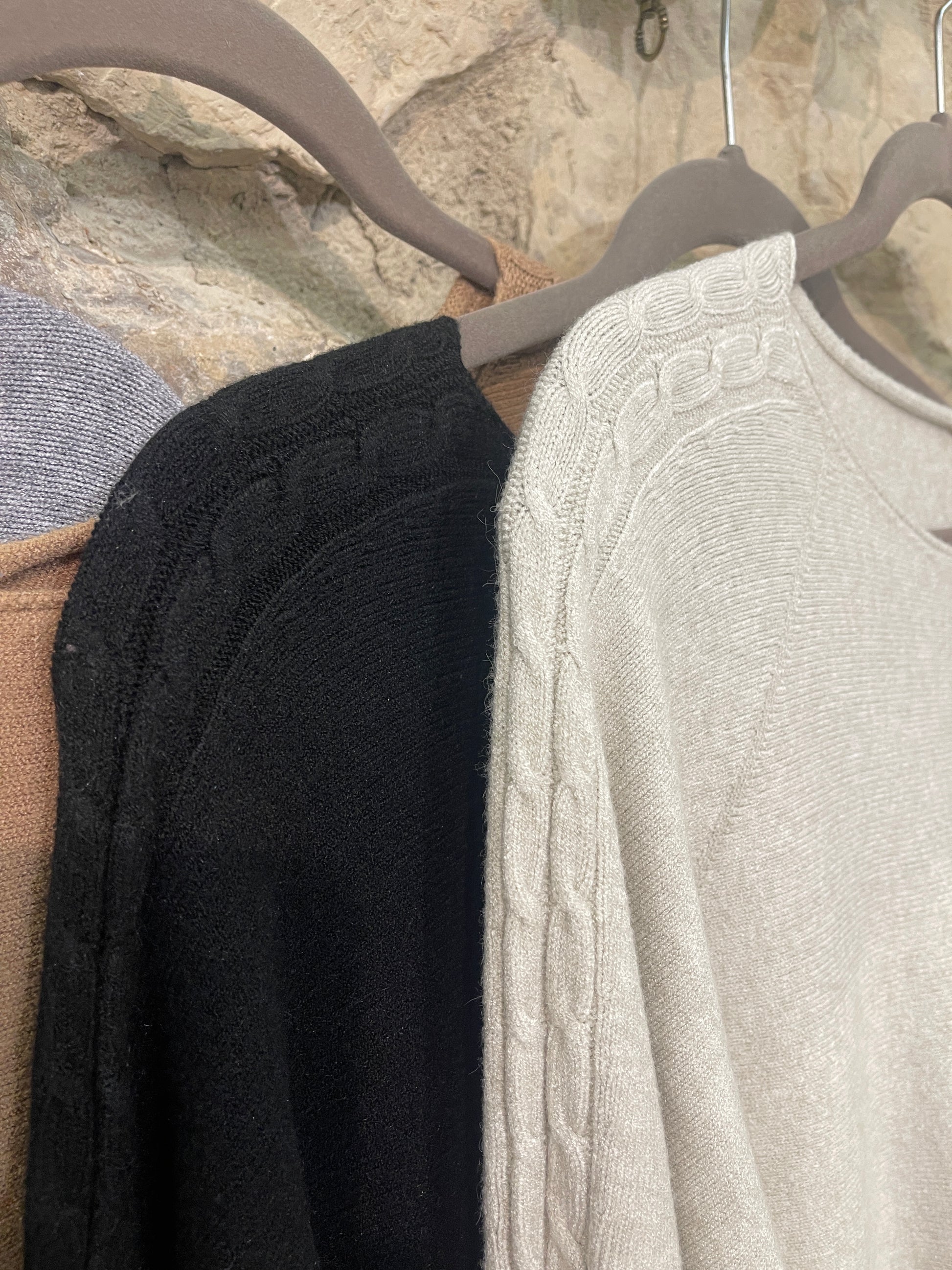 Jersey de punto muy agradable y detalle de trenzado en hombro y brazos.
