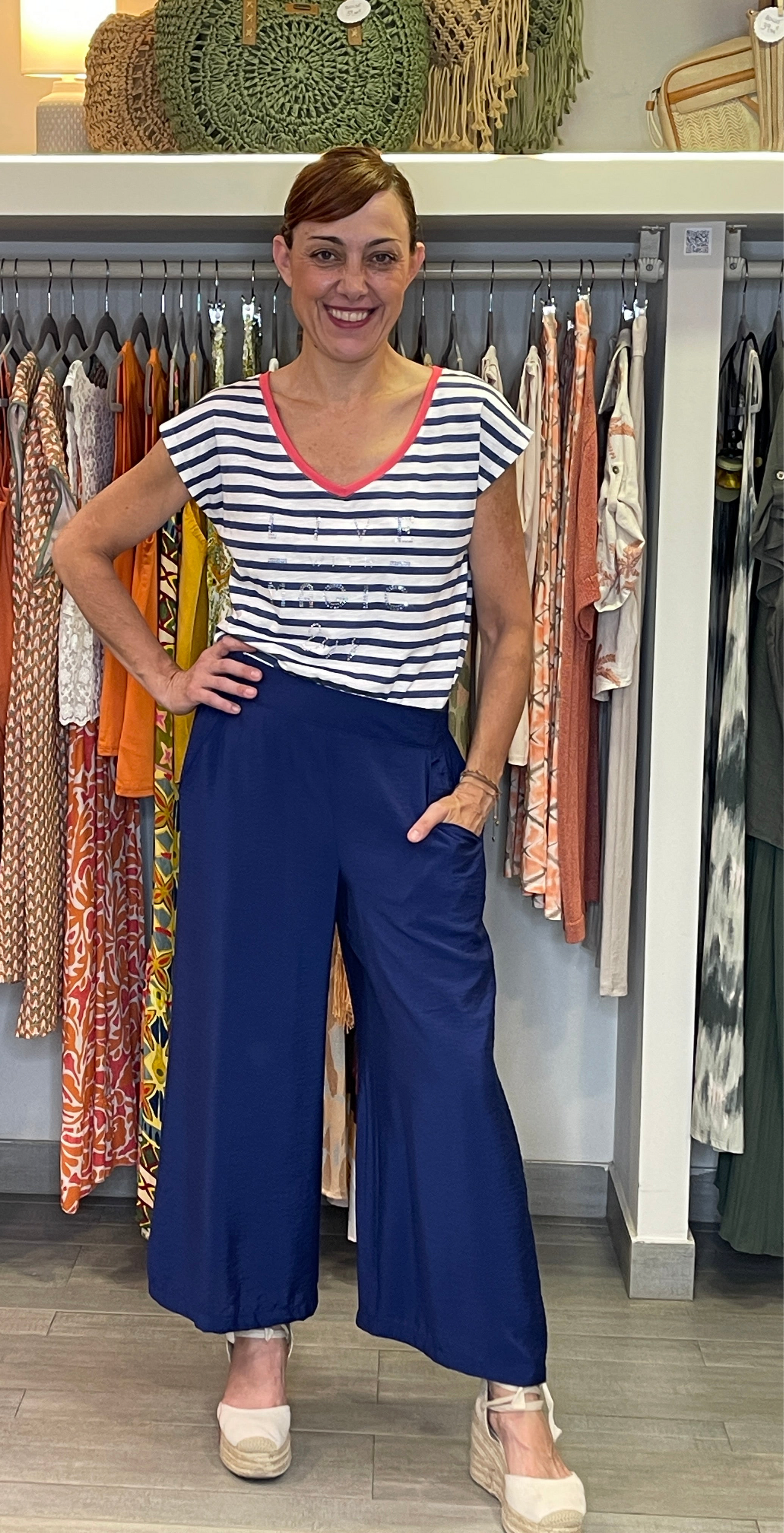 Pantalón culote con goma en cintura. y bolsillos.