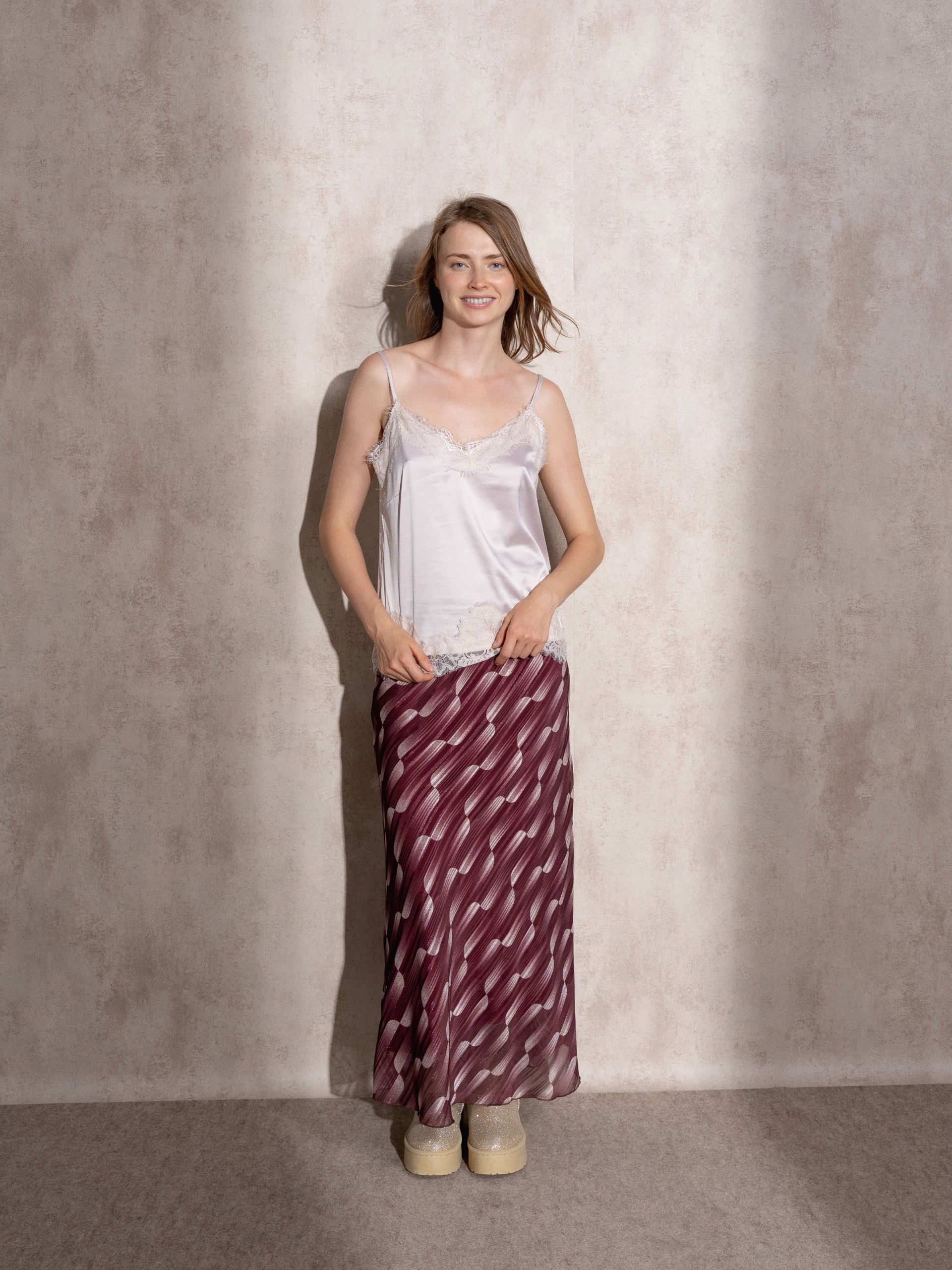 Lencera con blonda en pecho, espalda y bajo, de tirante ajustable.